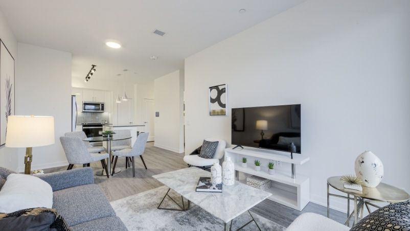 - Stylish stainless-steel, full size appliances including energy efficient fridge, dishwasher, stove and microwave